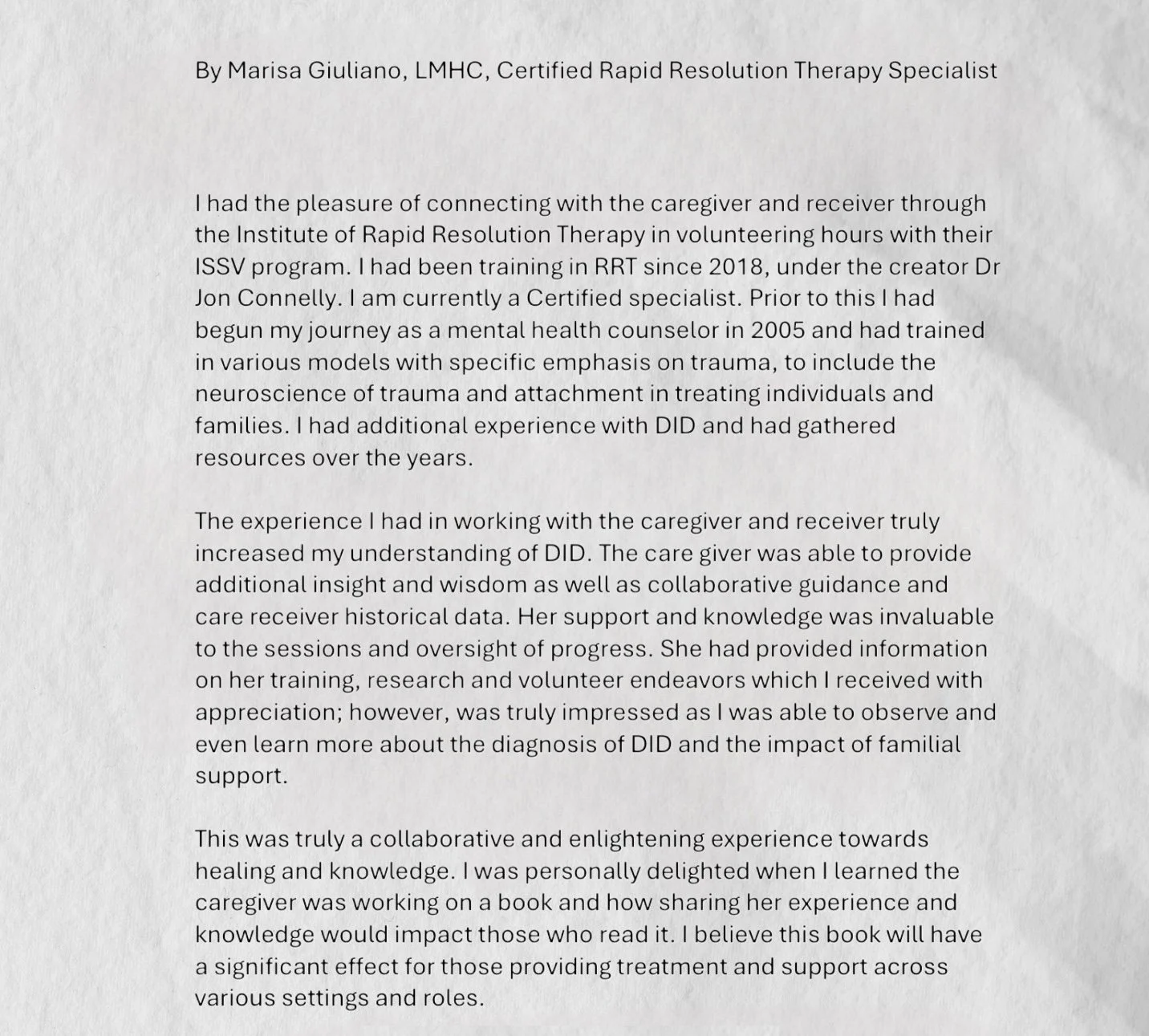 Testimonials: Healing is a team effort of a psychiatrist, coach/therapist and if possible a caregiver.